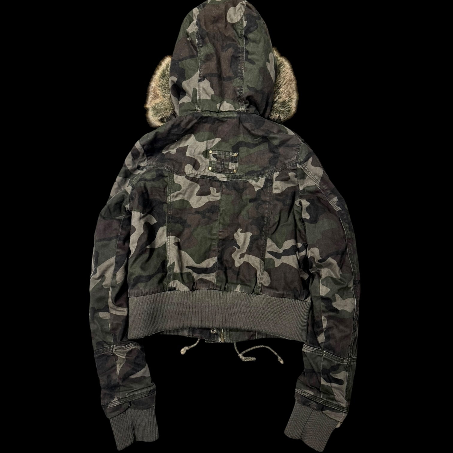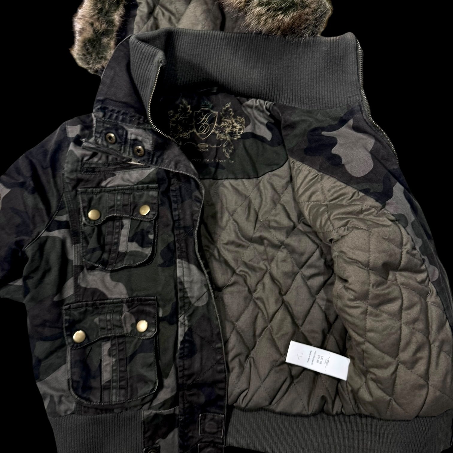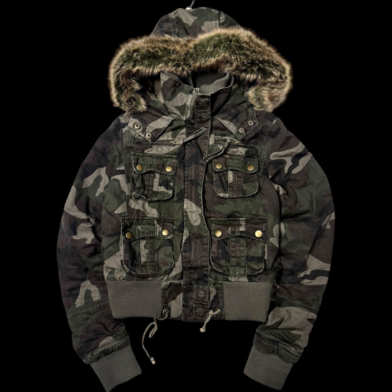 Підкладка стьобана, капюшон з хутром, знизу куліска для регулювання, чотири накладні кишені спереду.