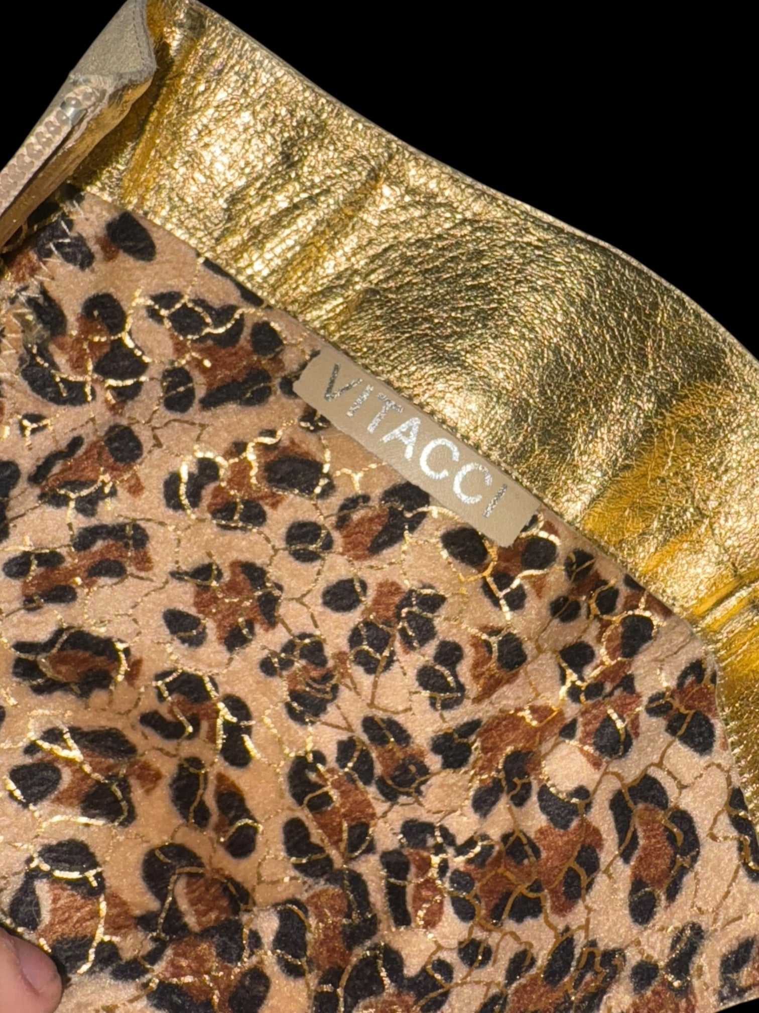 підкладка — тканина з леопардовим принтом + вставки зі штучної шкіри золотого кольору